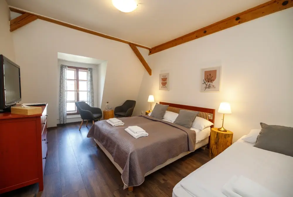 K dispozici jsou dvoulůžkové, třílůžkové a čtyřlůžkové pokoje. Prosíme, uveďte ve formuláři v poznámce, o jaký typ pokoje máte zájem.